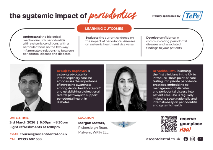 Dr Raghavan actively promotes good diabetes self-care by supporting education programmes for healthcare professionals and patients. A strong advocate for interdisciplinary care, he emphasises the importance of increasing awareness among dental healthcare staff and establishing bidirectional referral pathways to support periodontal health in diabetes.